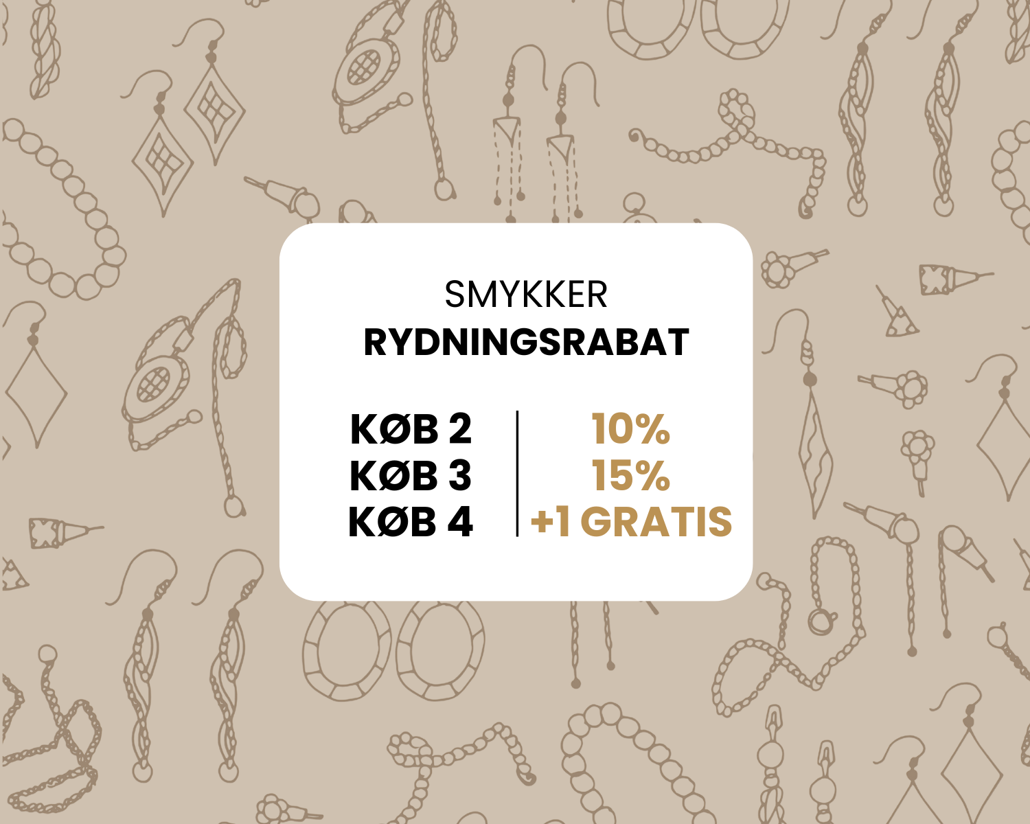 Vi har besluttet at stoppe vores smykkekollektion, og derfor har vi sat gang i et kæmpe udsalg med op til 80% rabat på alle vores varer. Alt skal væk – så skynd dig at shoppe, så længe lager haves! J