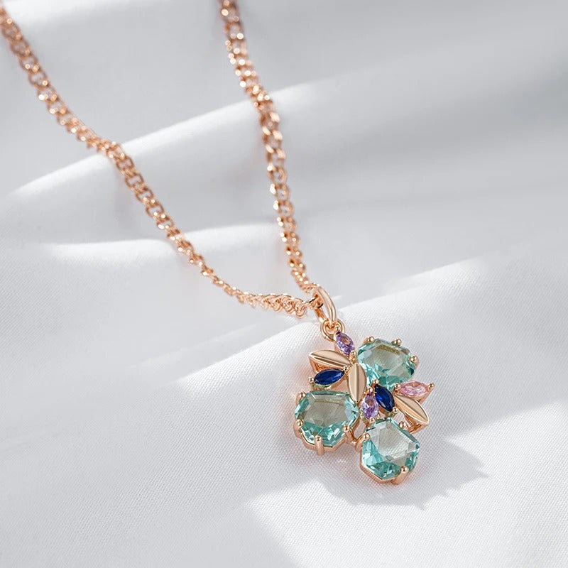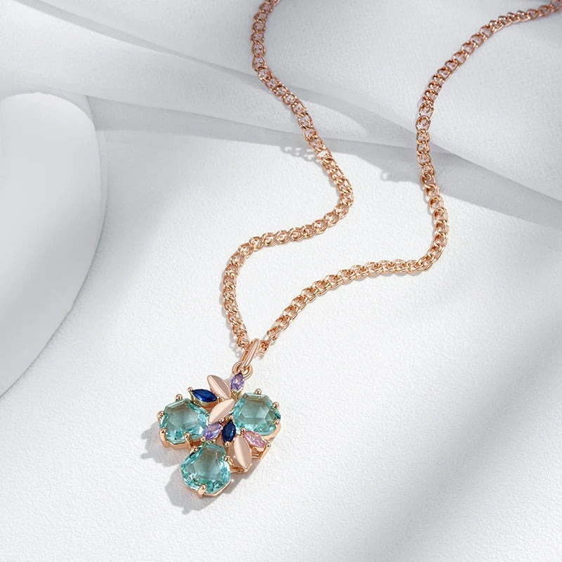 Halskæde med tropisk blomsterophæng og zirkoner i rosaguldbelægning