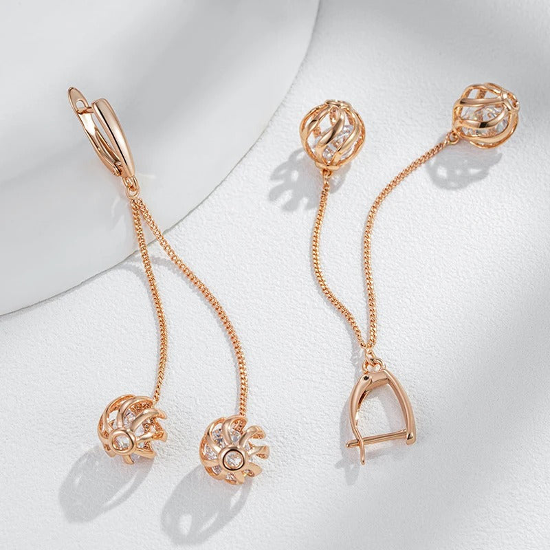 Lange hængende øreringe med zirkoner i roséguldsbelægning