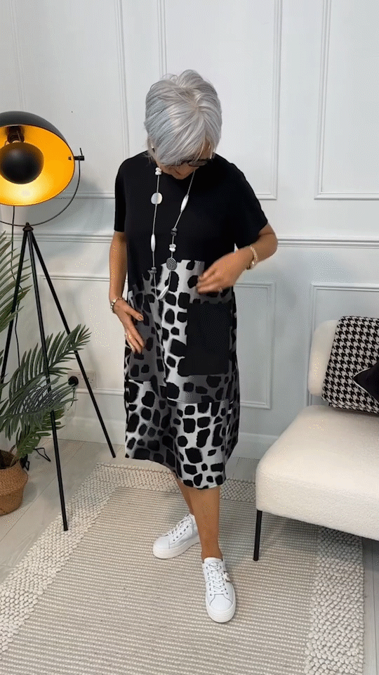 Med Lina kjolen vælger du et tøjstykke, der harmonisk forener komfort og stil. Uanset om det er på kontoret, under en bytur eller til en fest – med denne kjole er du altid passende klædt.