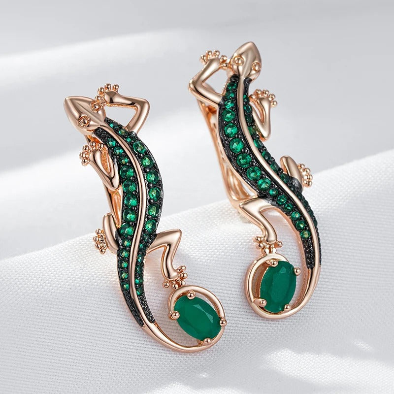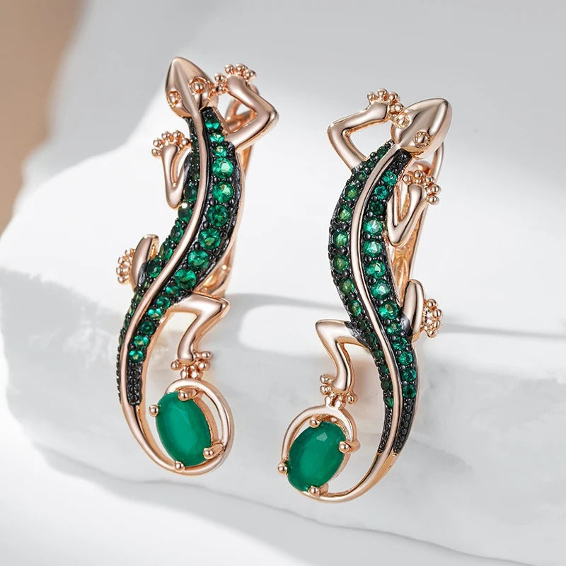 Ødleformede øreringe i rosaguldplatering med grønne zirkoner